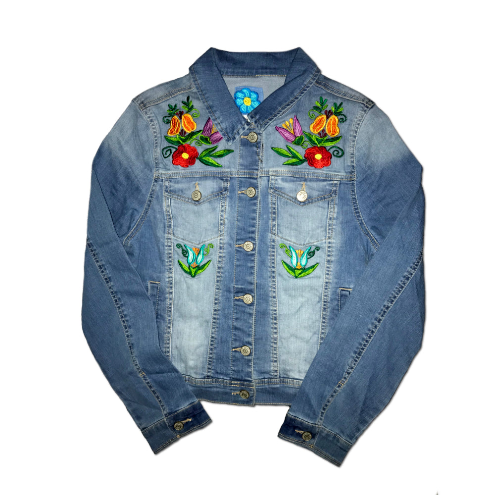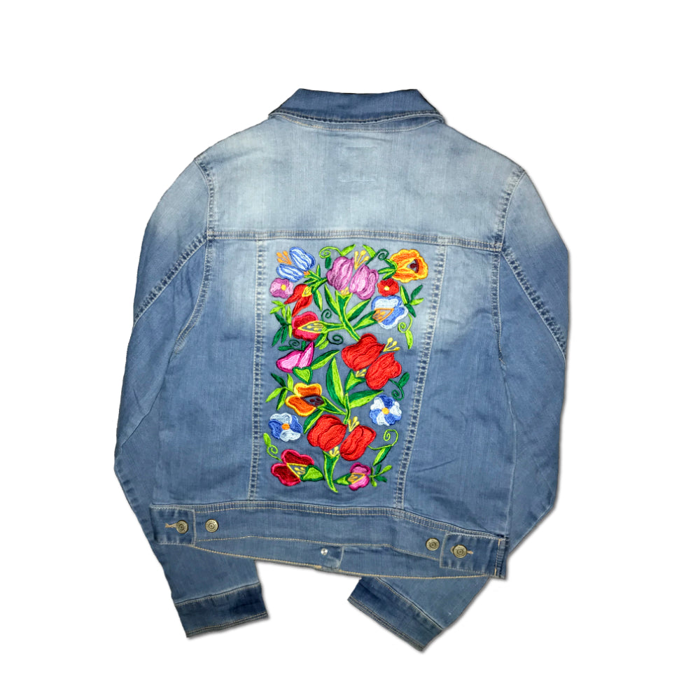 This is a beautiful denim jacket decorated with amazing silk threads and embroidered by indigenous hands from the Kanxoc community in Mexico. It is the perfect blend of modern and autochthonous, that goes perfectly with the young one's unique style.