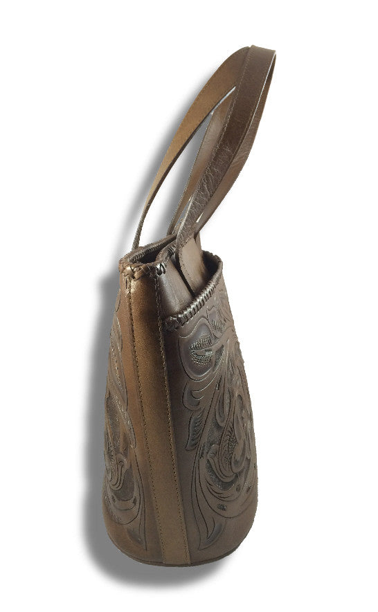 YEO is a family-owned shop in the small town of Tlaquepaque, in Jalisco, Mexico. They produce this beautiful handbag, 100% handmade with real leather. YEO’s specialty is in the technique called “Talabarteria” which provides the gorgeous design on its leather products.