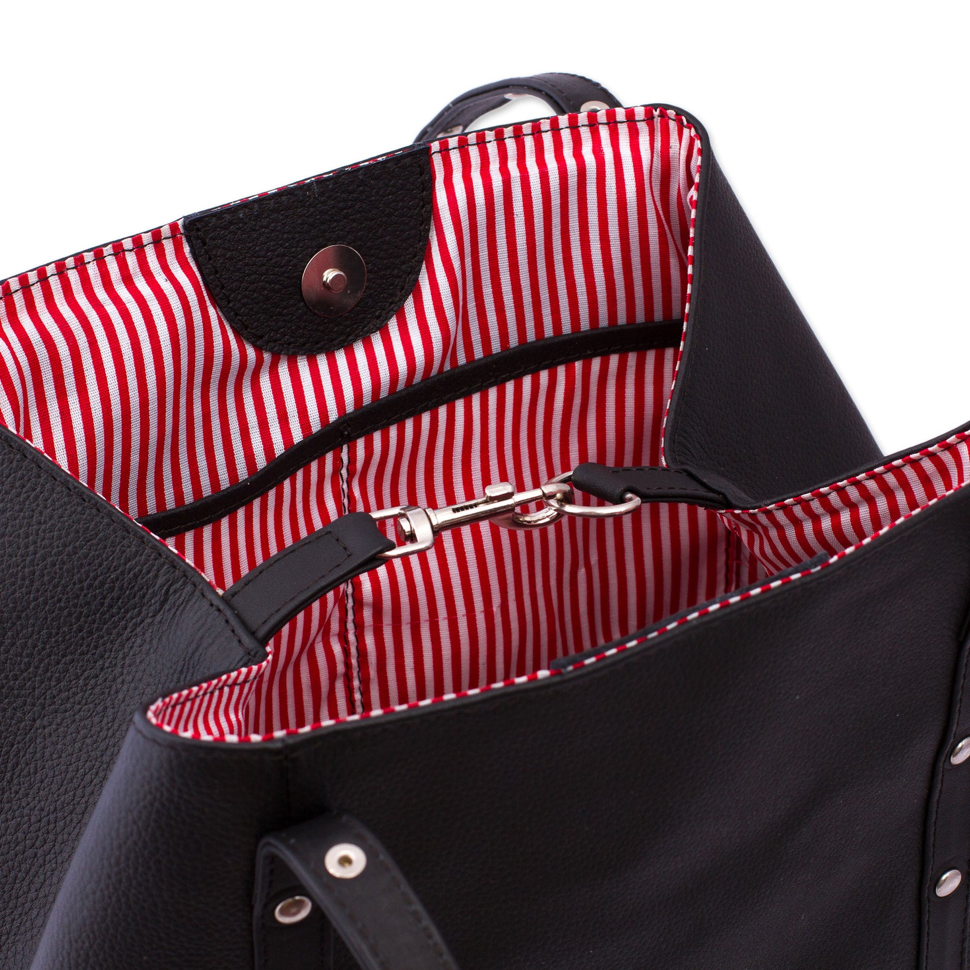 'Confidence' Black Leather Shoulder Bag with Red Striped Lining
