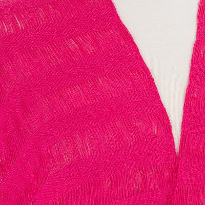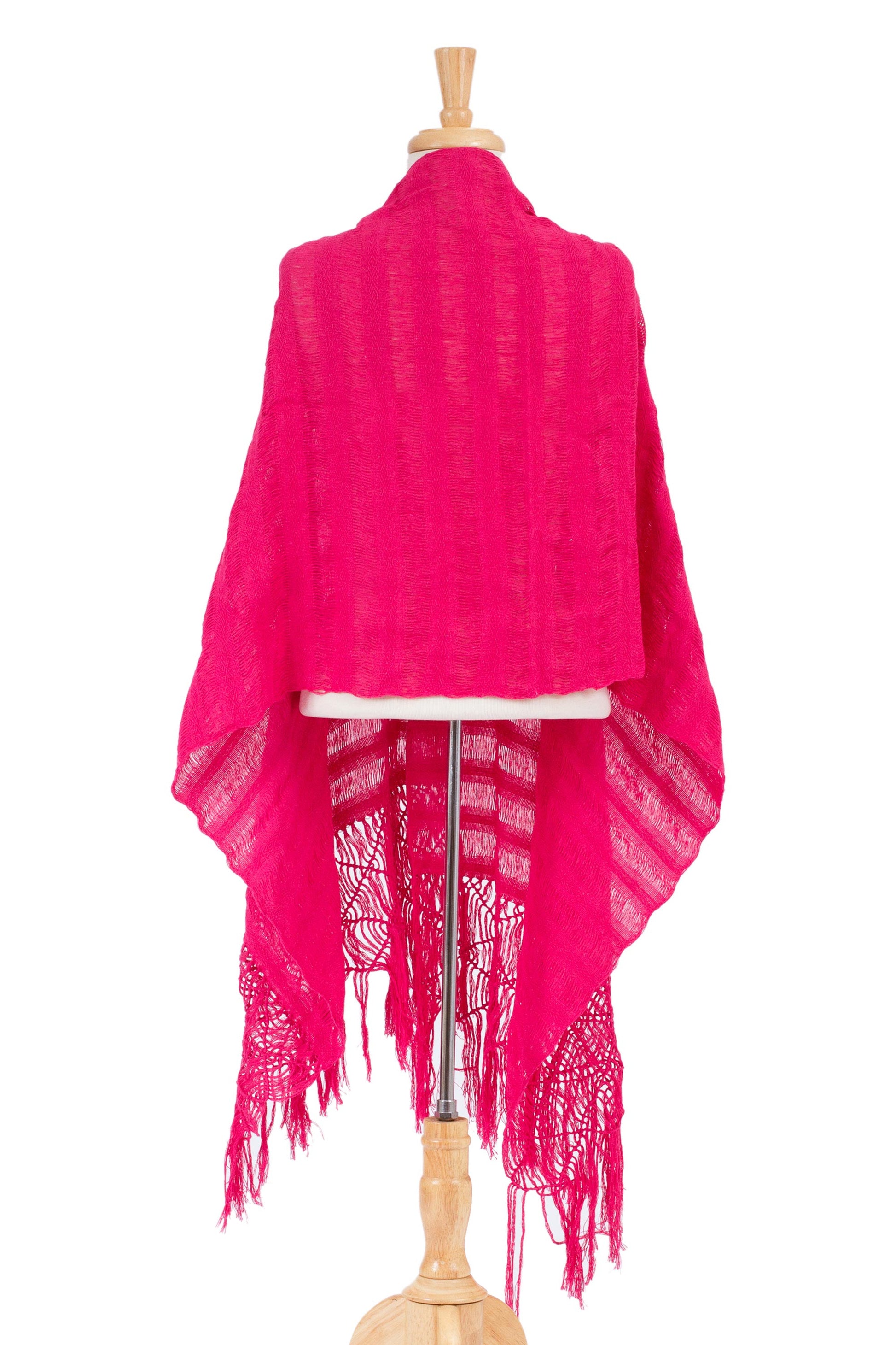Obtaining Mexican pink from natural pigments, Oaxacan weavers dye cotton threads as the first step toward creating this lovely rebozo. Mexico's Patricia and Gabriela are proud to present this rebozo, which they regard as a symbol of Mexican femininity. The cotton wrap is woven on a traditional loom while the fringe is finished by hand.