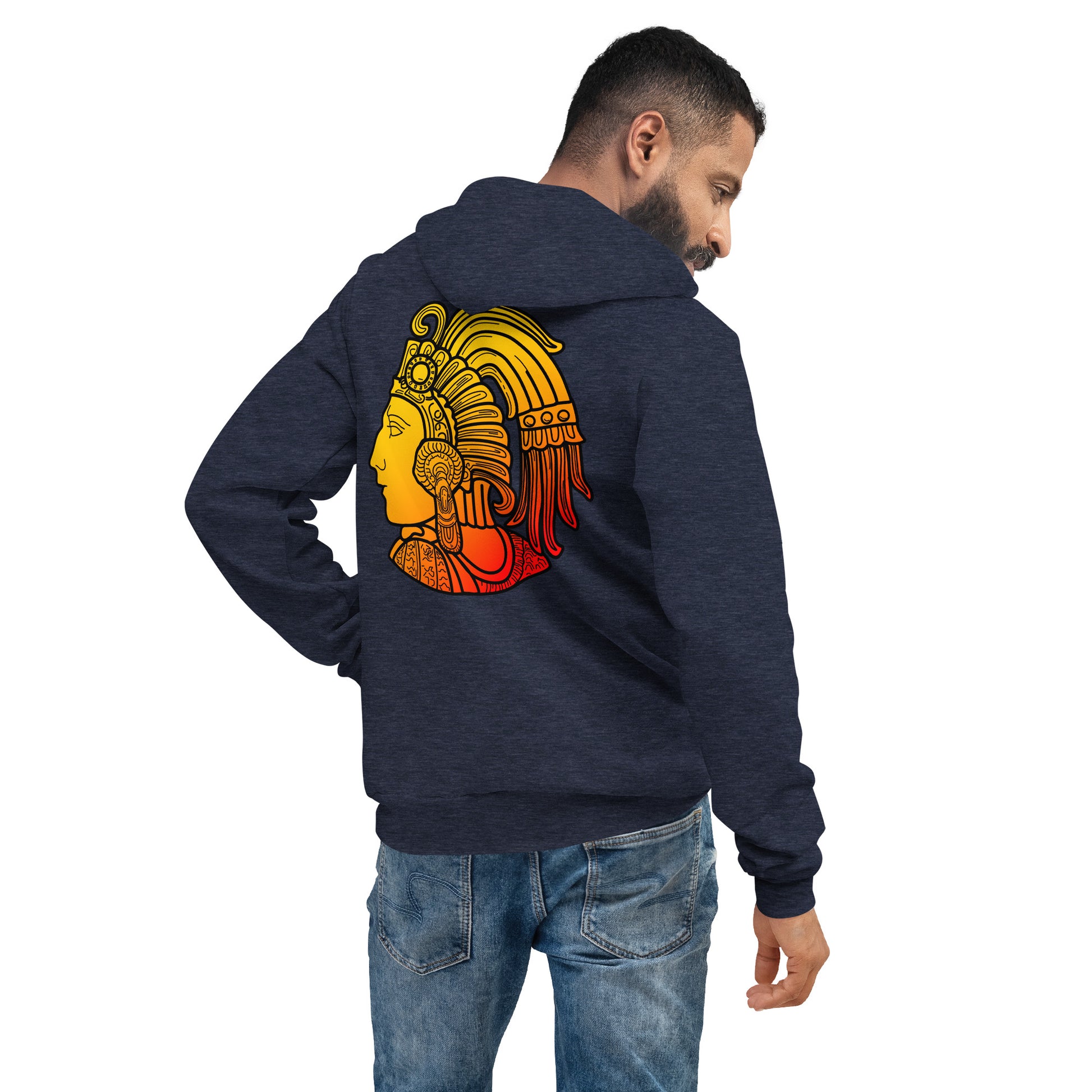 A premium cotton hoodie featuring a the iconic Aztec emperor printed on the back and our signature pepper embroidered on the front.