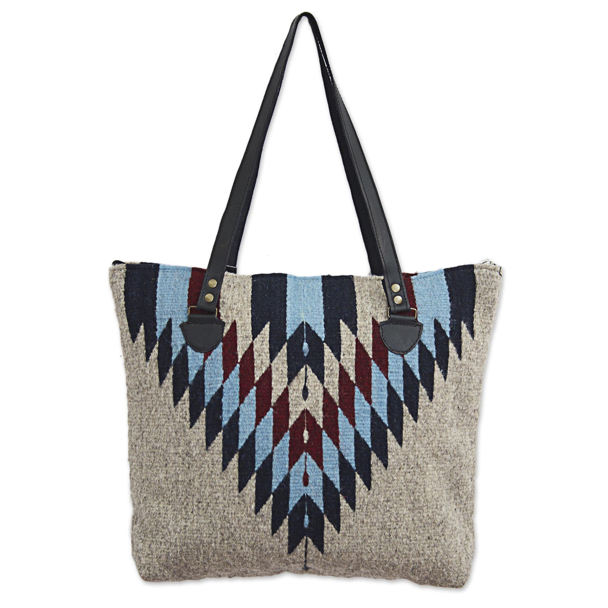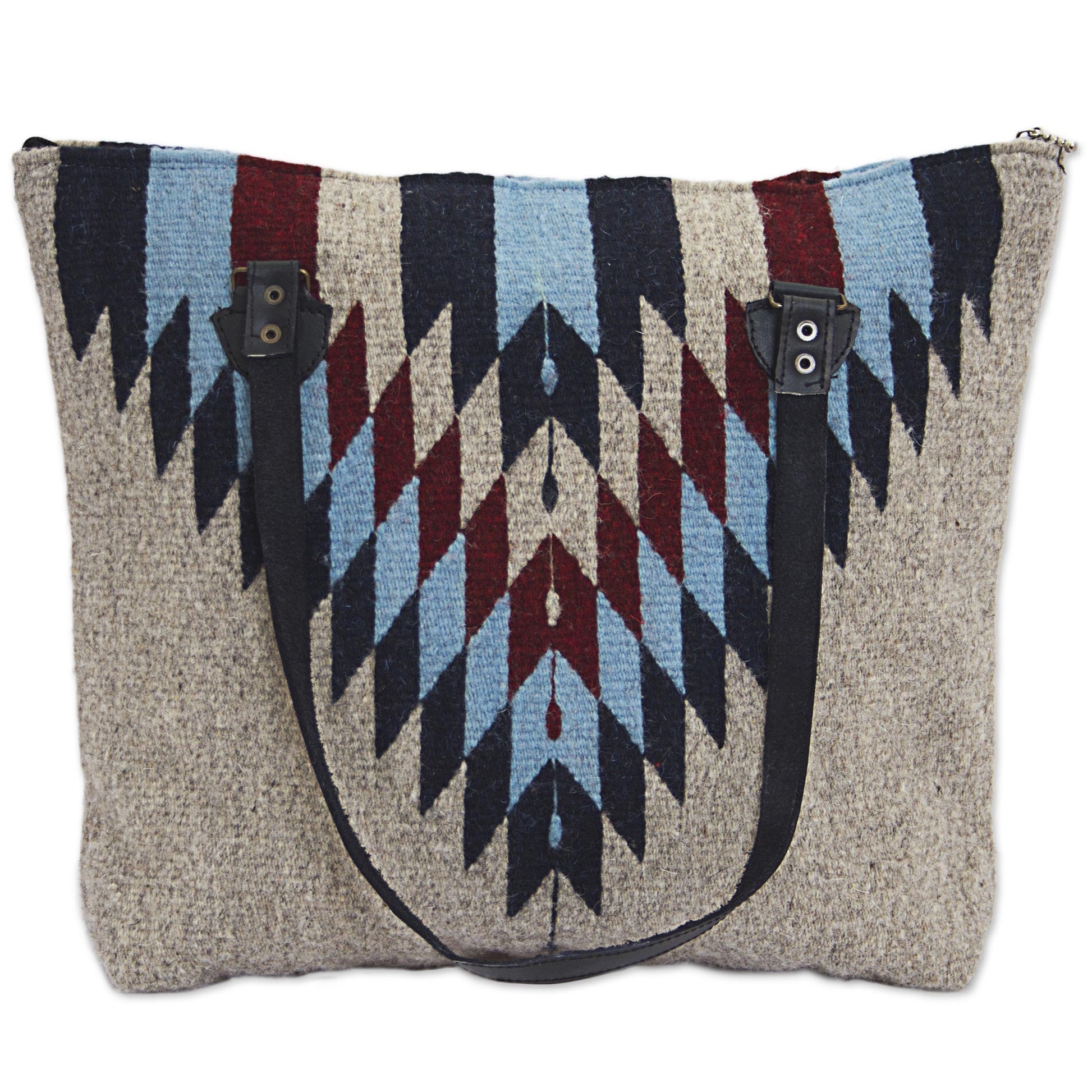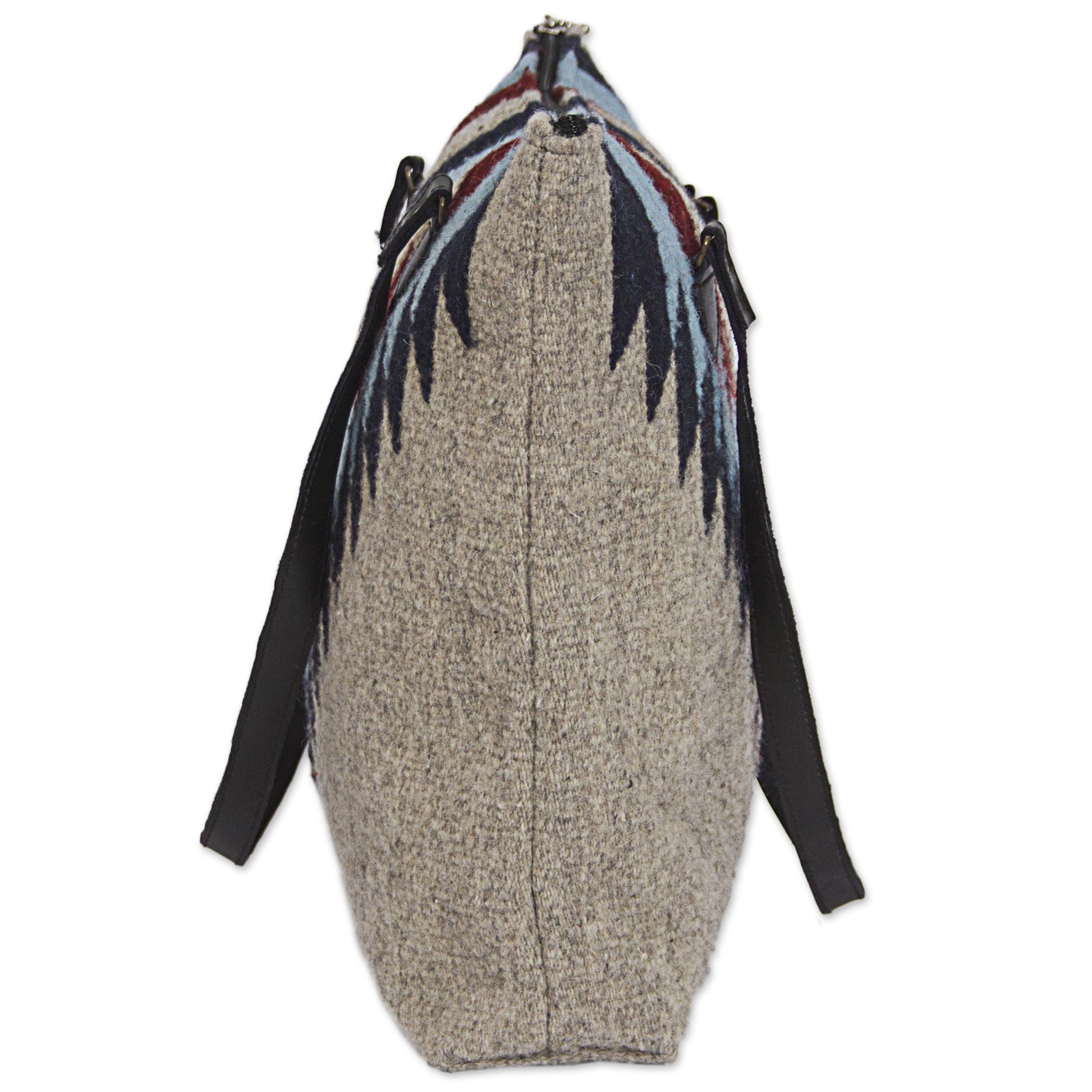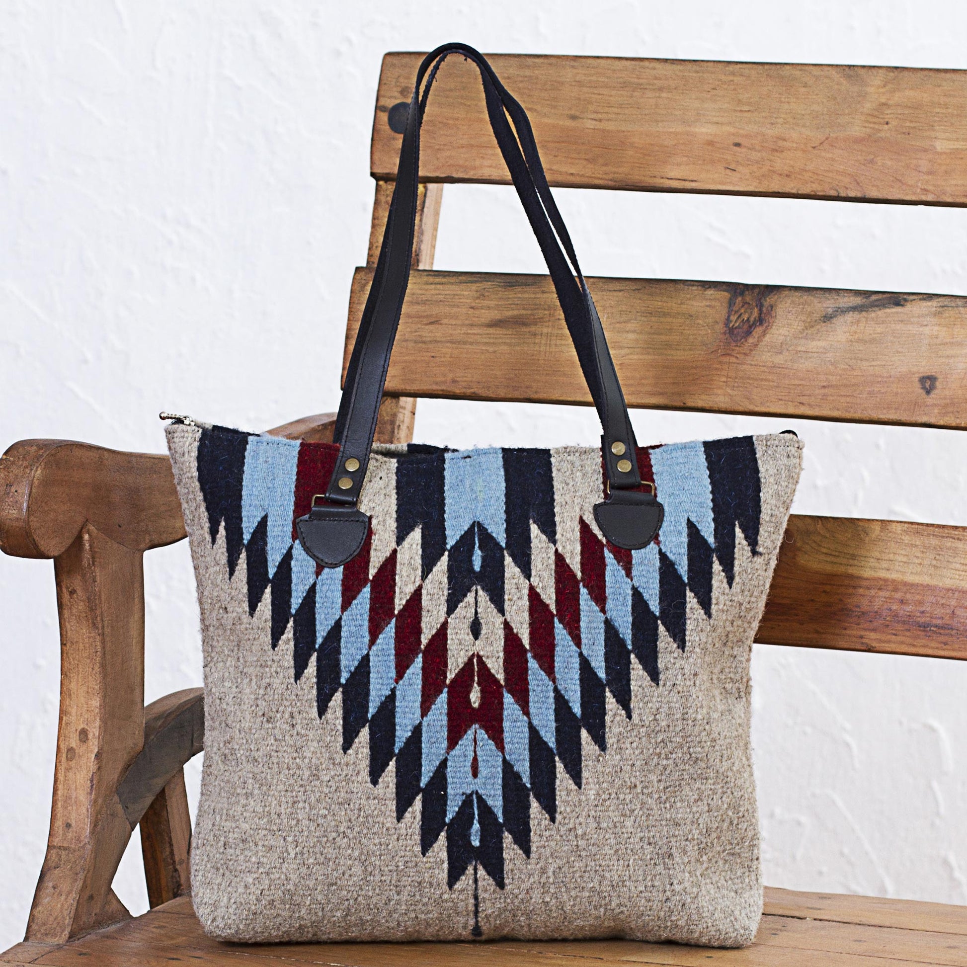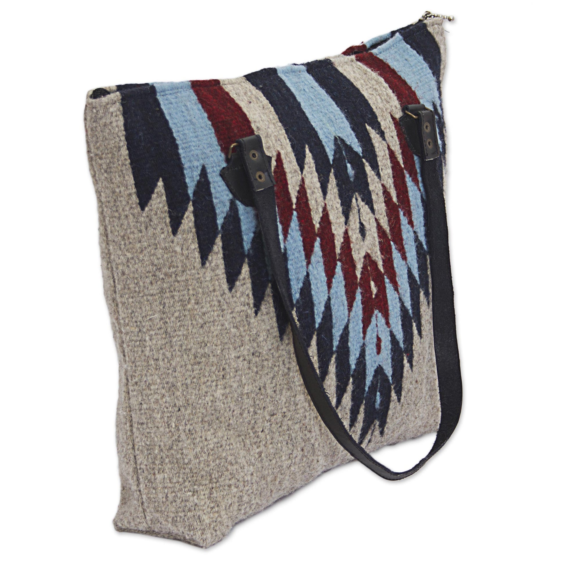 Mexico's Marco Bautista presents this fun shoulder bag to accessorize your wardrobe. The wool exterior features an intriguing diamond design in blue and brown on a beige ground. Leather shoulder straps add texture to the bag's design. The interior is lined with sleek black polyester and includes a zipper pocket. The top of the bag also zips to protect your belongings.