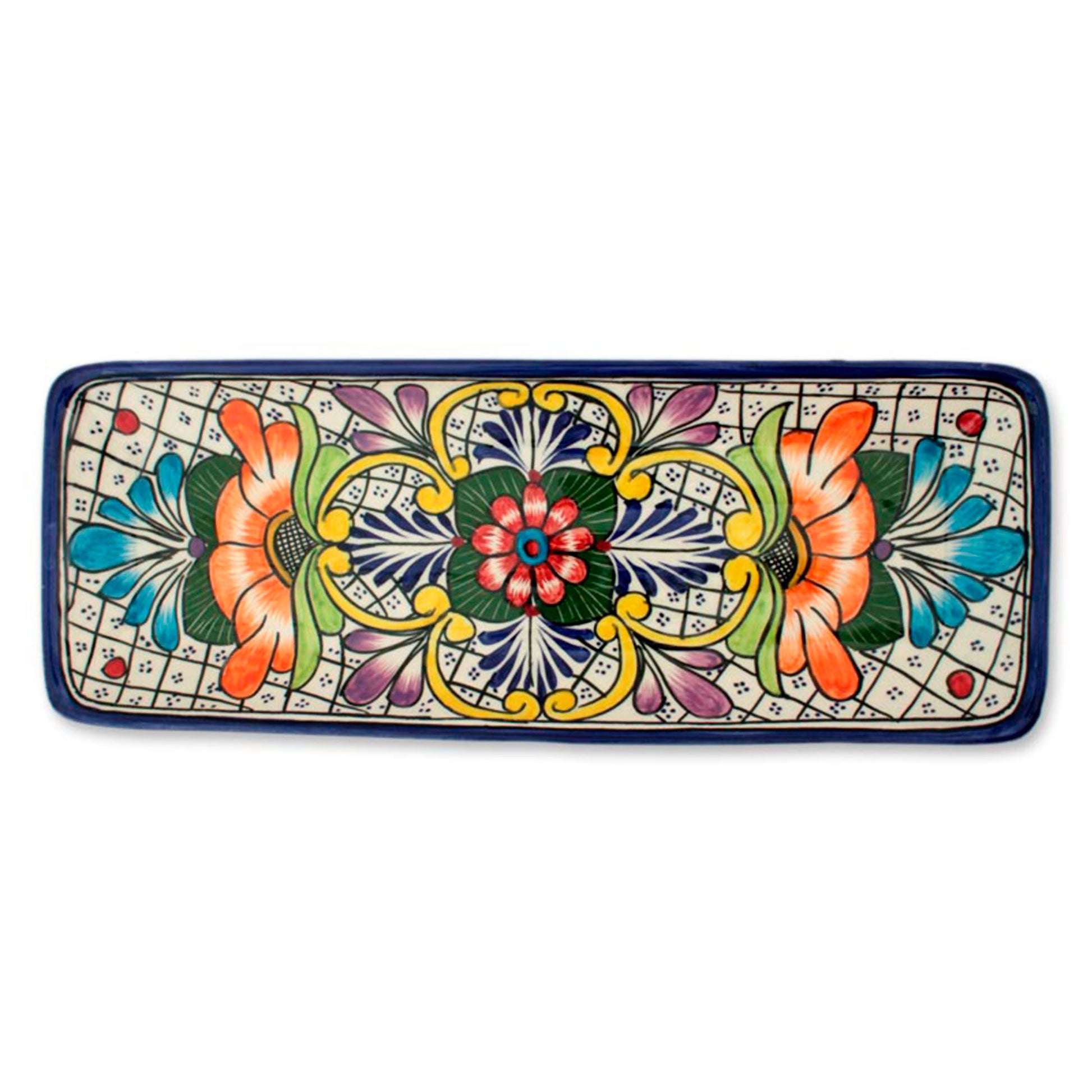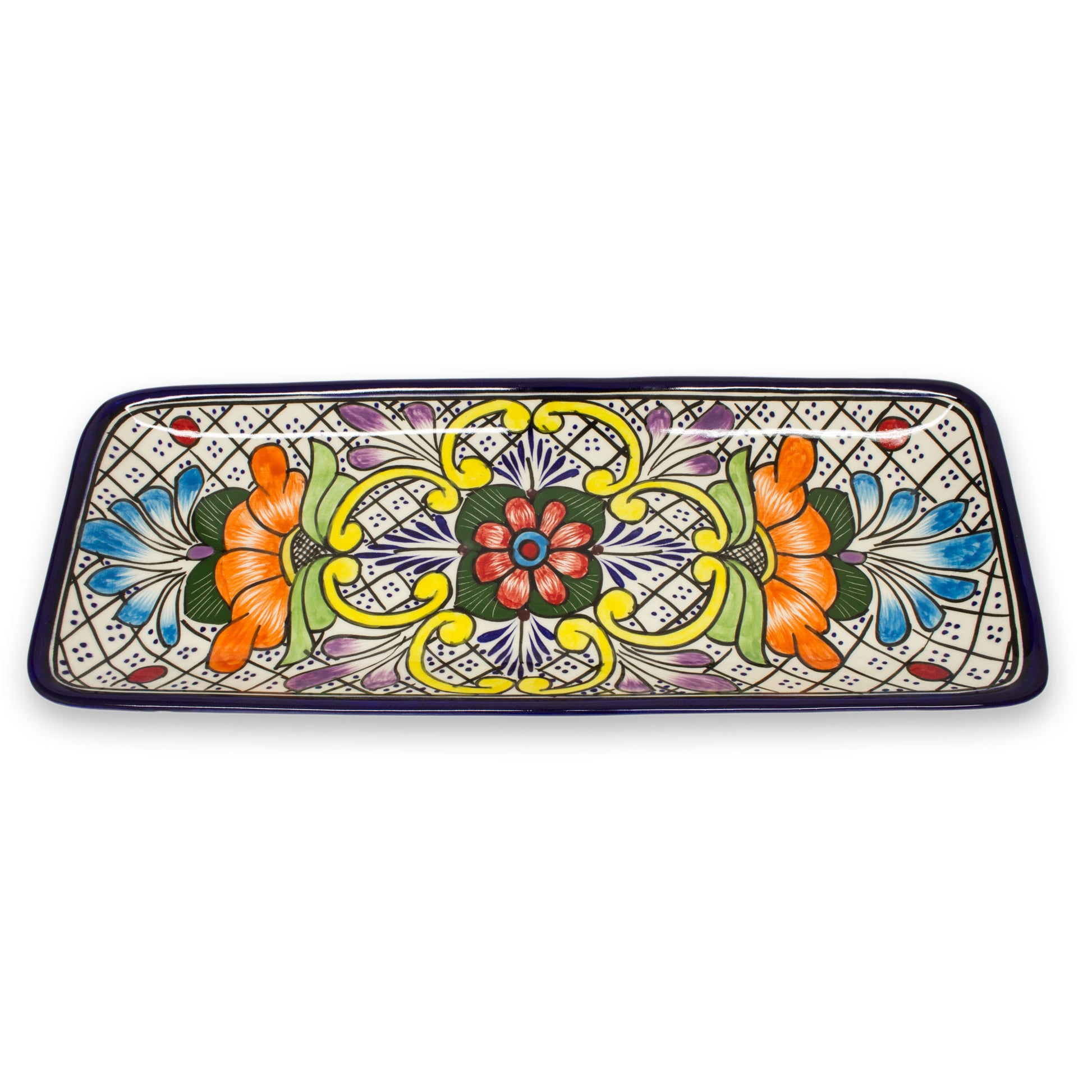 'Guanajuato Flora' Hand Crafted Talavera Style Ceramic Platter