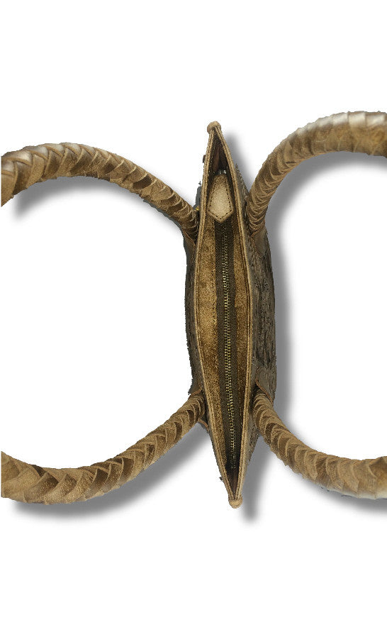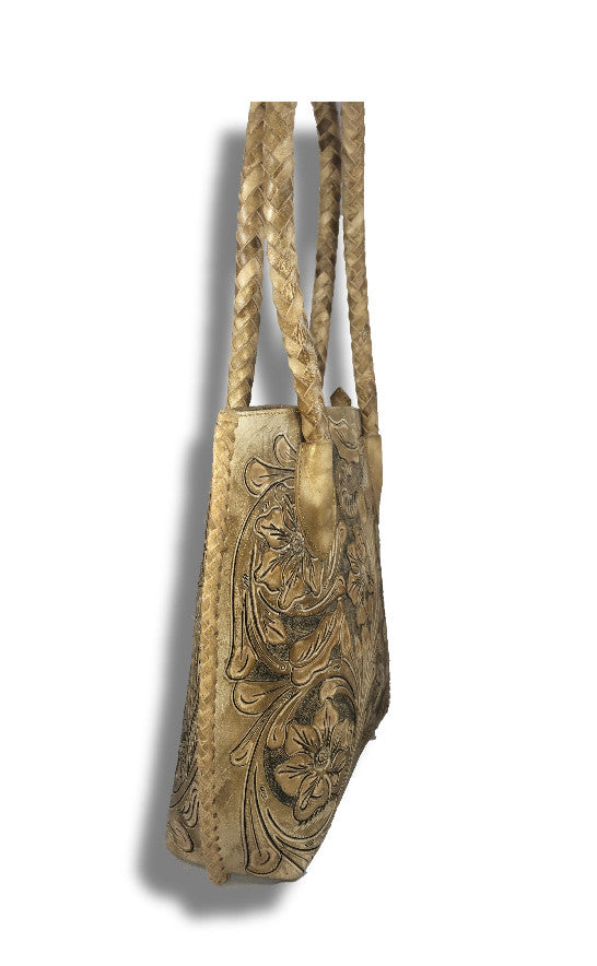YEO is a family-owned shop in the small town of Tlaquepaque, in Jalisco, Mexico. They produce this beautiful handbag, 100% handmade with real leather. YEO’s specialty is in the technique called “Talabarteria” which provides the gorgeous design on its leather products.