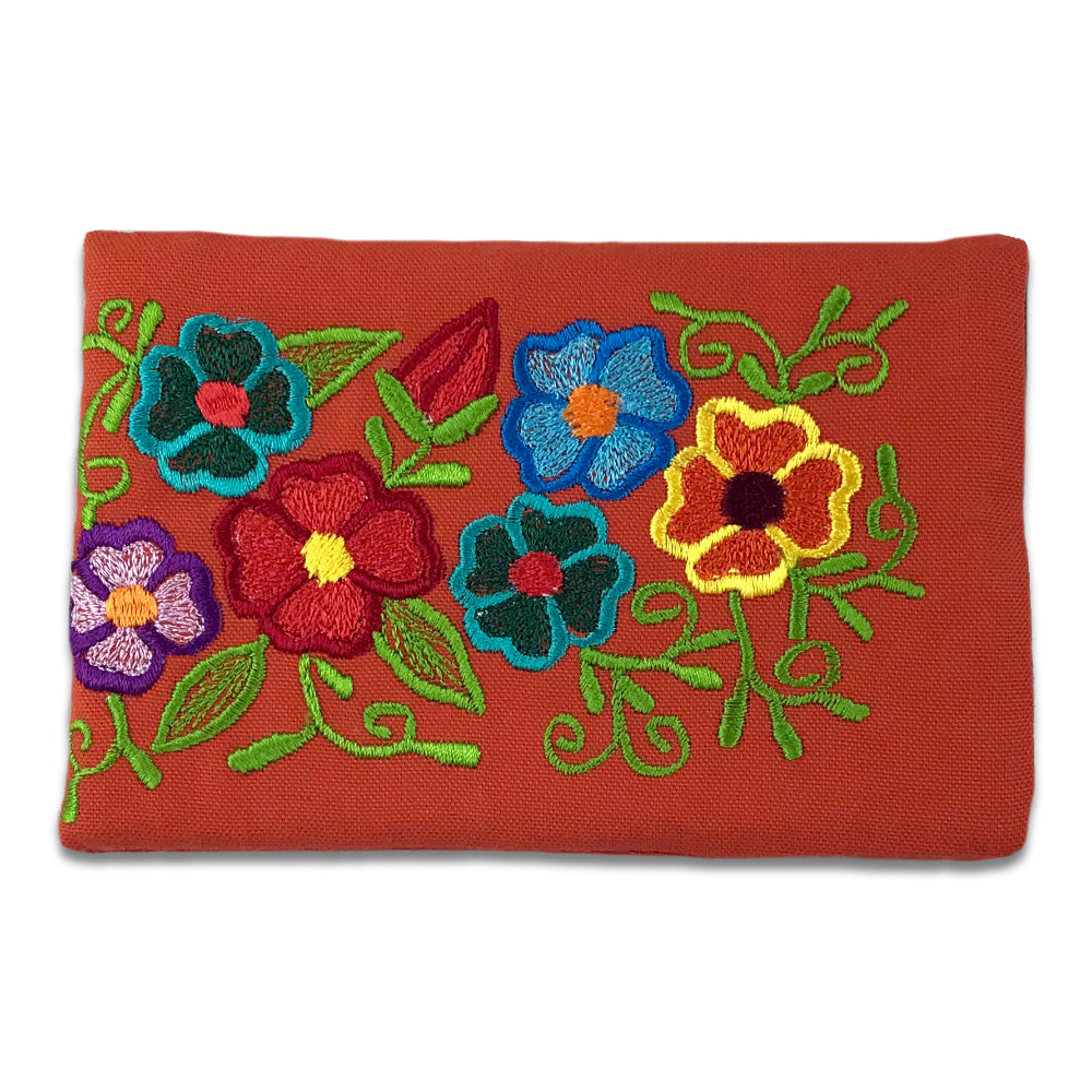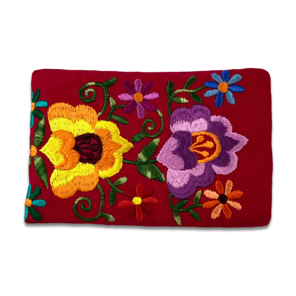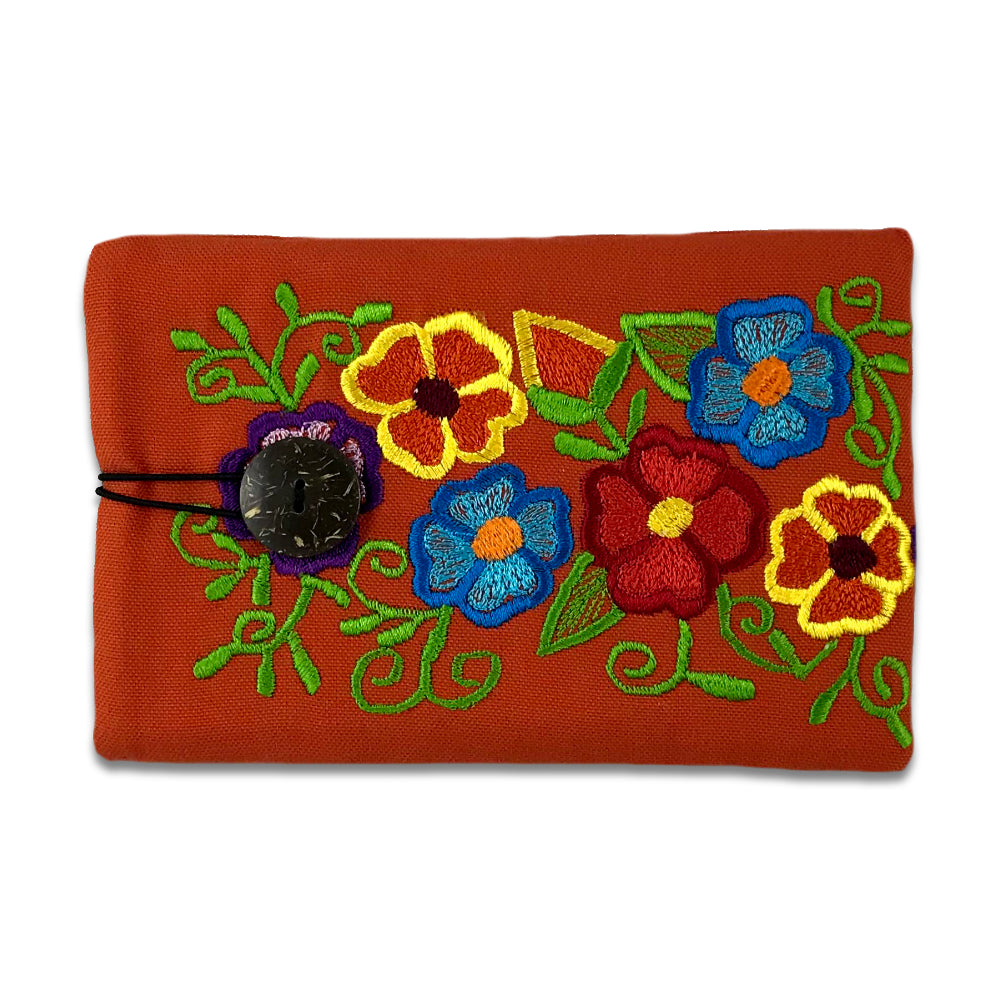 The indigenous artisans from the Kanxoc community in Mexico craft this cell phone case of cotton in vivid colors, embroidering the front with floral motifs. The case opens with a button to a black cotton lining for keeping your cell phone safe.