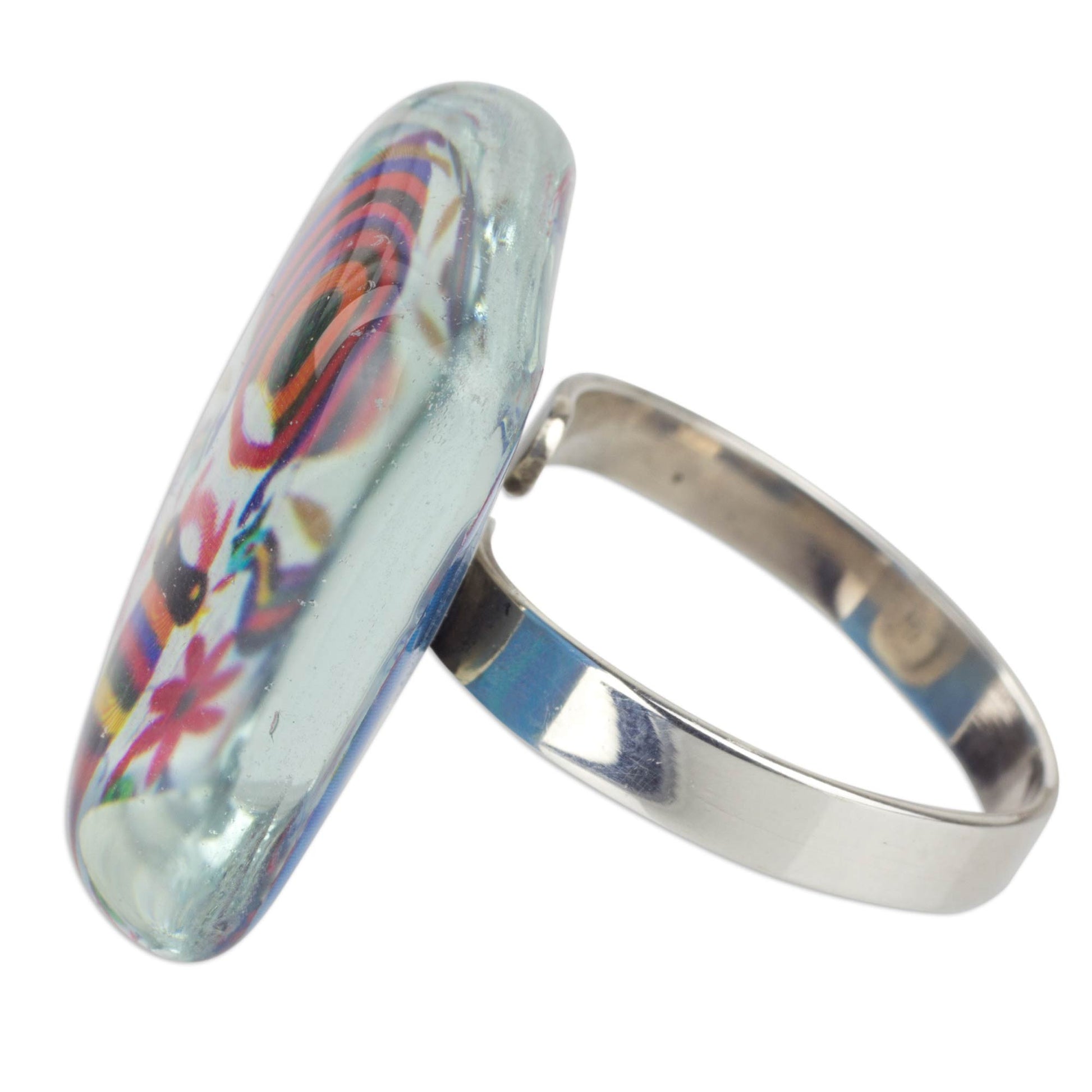 'Otomi Fantasy' Multicolor Art Glass Cocktail Ring