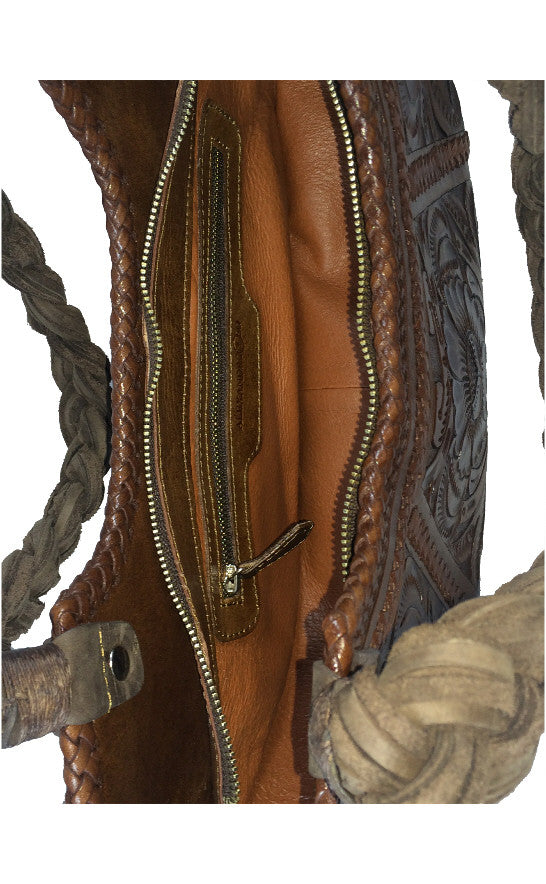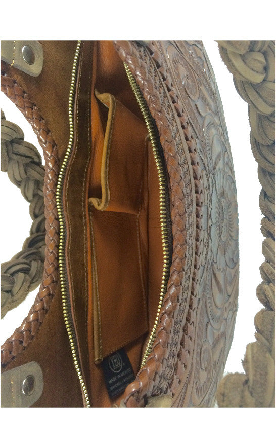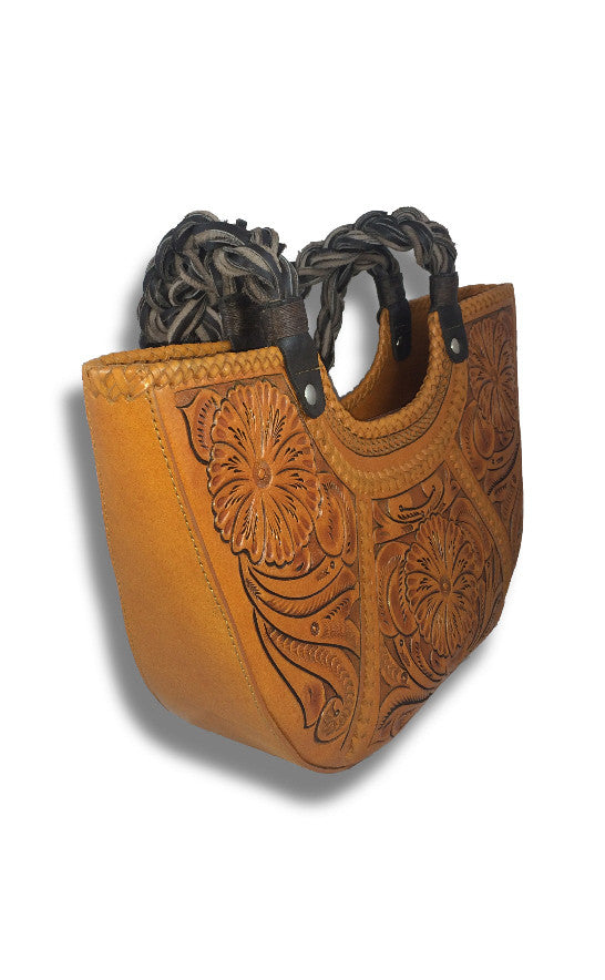 YEO is a family-owned shop in the small town of Tlaquepaque, in Jalisco, Mexico. They produce this beautiful handbag, 100% handmade with real leather. YEO’s specialty is in the technique called “Talabarteria” which provides the gorgeous design on its leather products.