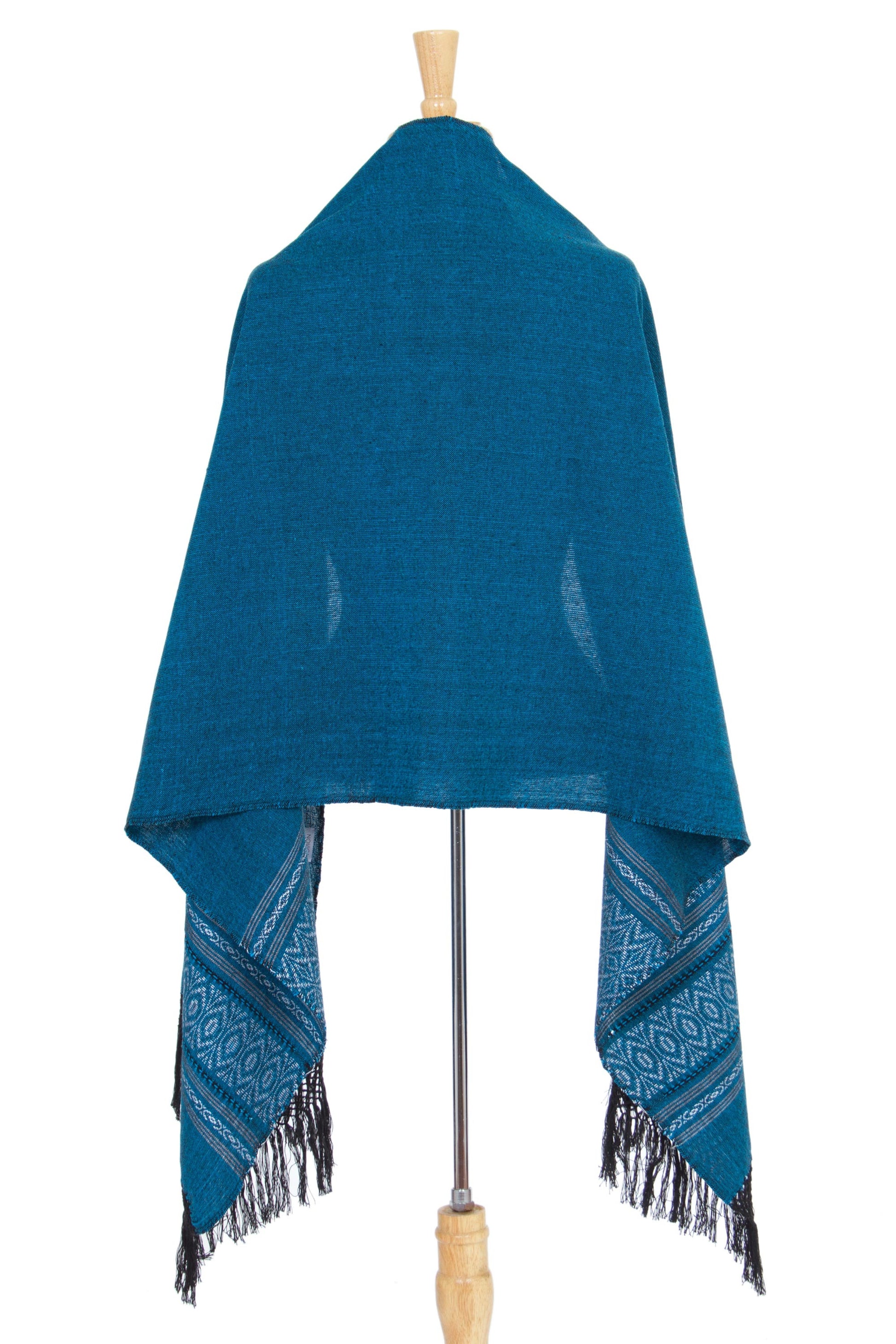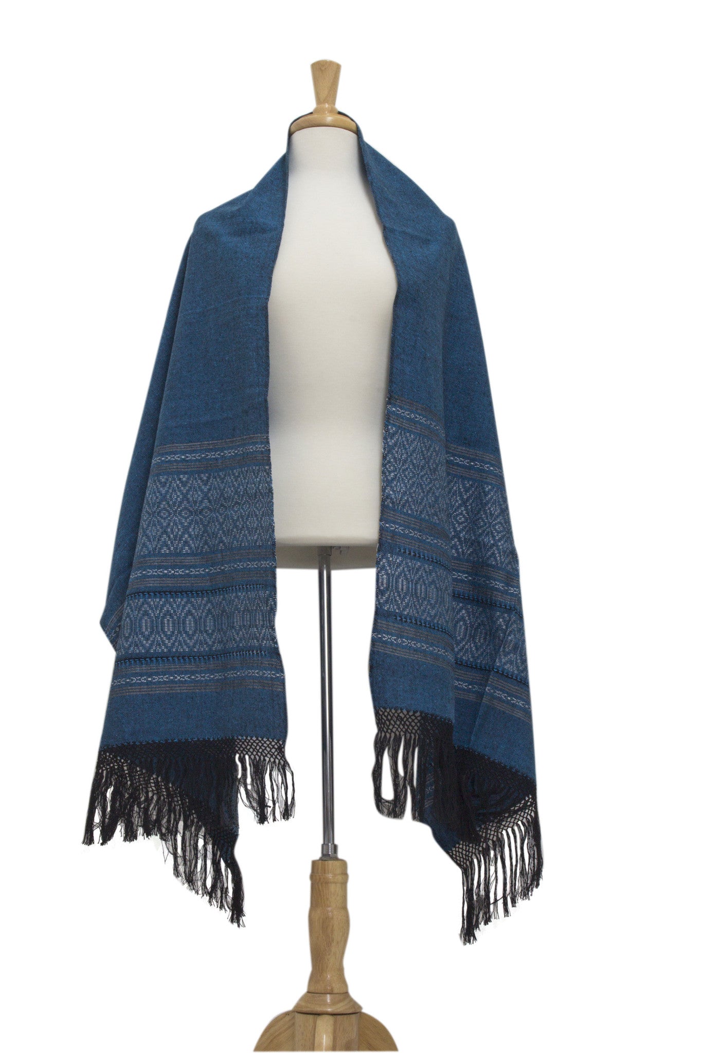 Zapotec cotton rebozo shawl, 'Blue Zapotec Treasures'